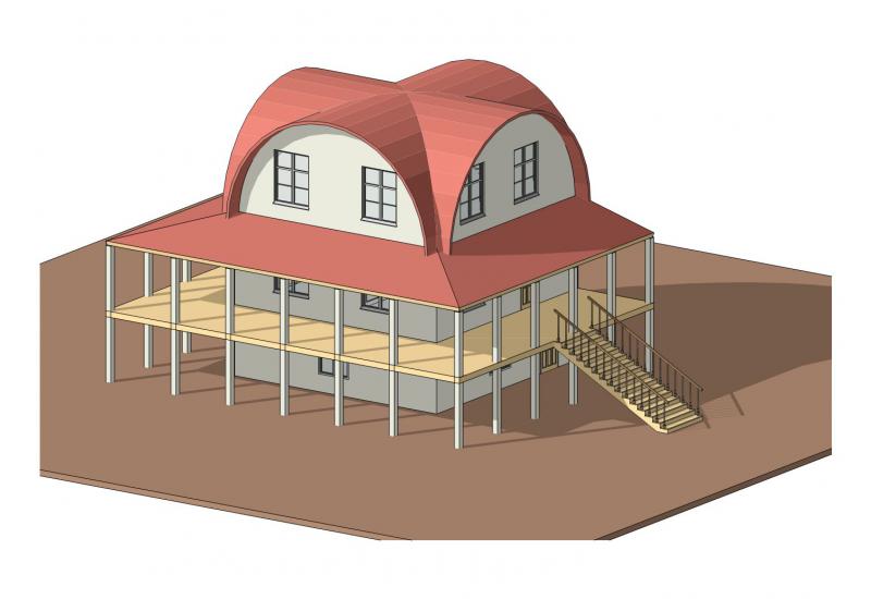 это проект. сейчас строительство на стадии страпильной конструкции. подходящего фото не нашёл. в понед-вторн постараюсь выложить. ендова идёт по радиусу примерно R=5м и не по окружности, а по элипсу. вопрос: как уложить ендову по этой кривой? |