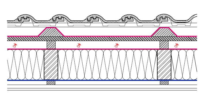 Там же две мембраны показаны... первая в классическом варианте, ну а далее под фальц уже идет вторая мембрана... хотя можно сделать и по другому: сделать все в классическом варианте, а утеплитель снизу монтировать уже после того как фальцем все закроют!