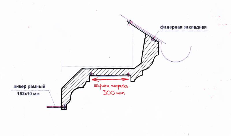 ВАРИАНТ № 2. Выкладываю фото и чертеж венчающего карниза из стеклопластика. Данный вариант имеет двух авторов (Москва и Пенза).