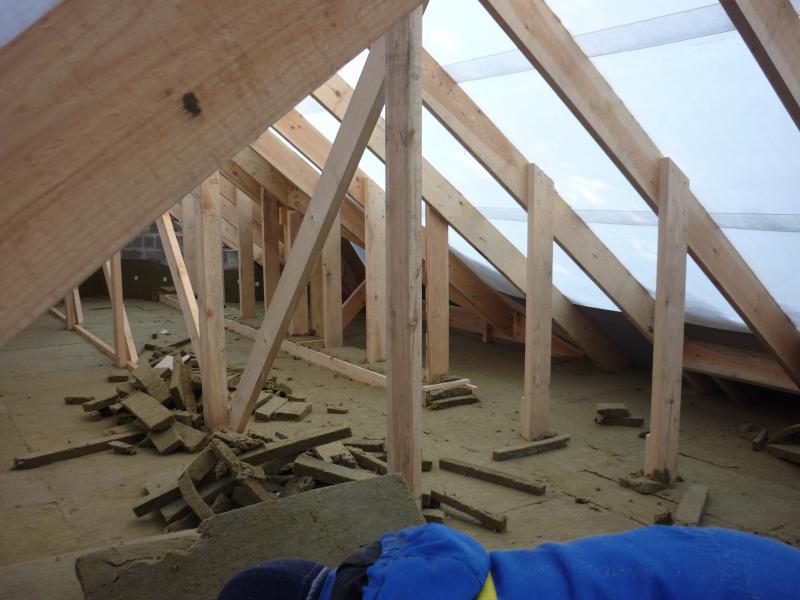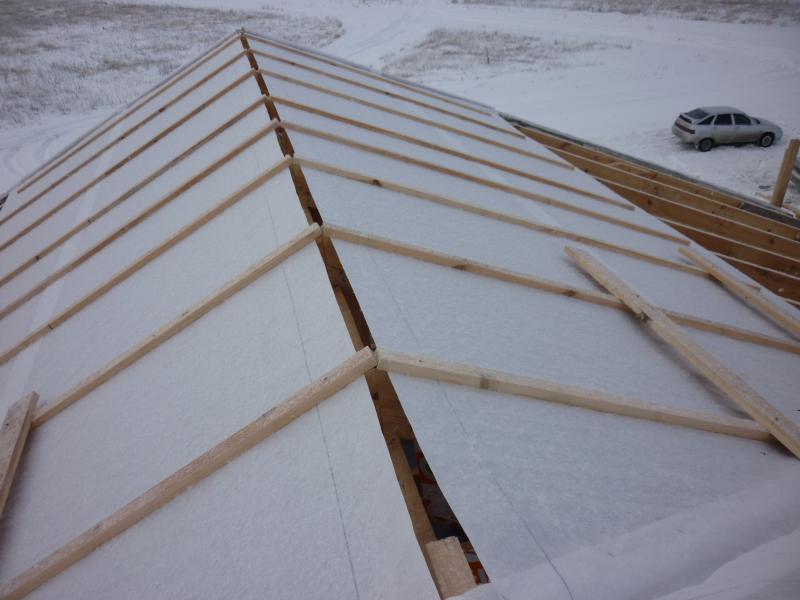да забыл сказать (будете смеяться, но каприз заказчика) что на этом доме утепленные участки крыши накрыты дельта макс-ом а холодные участки ютаконом . на фото видно выше уровня потолка натянут ютакон.