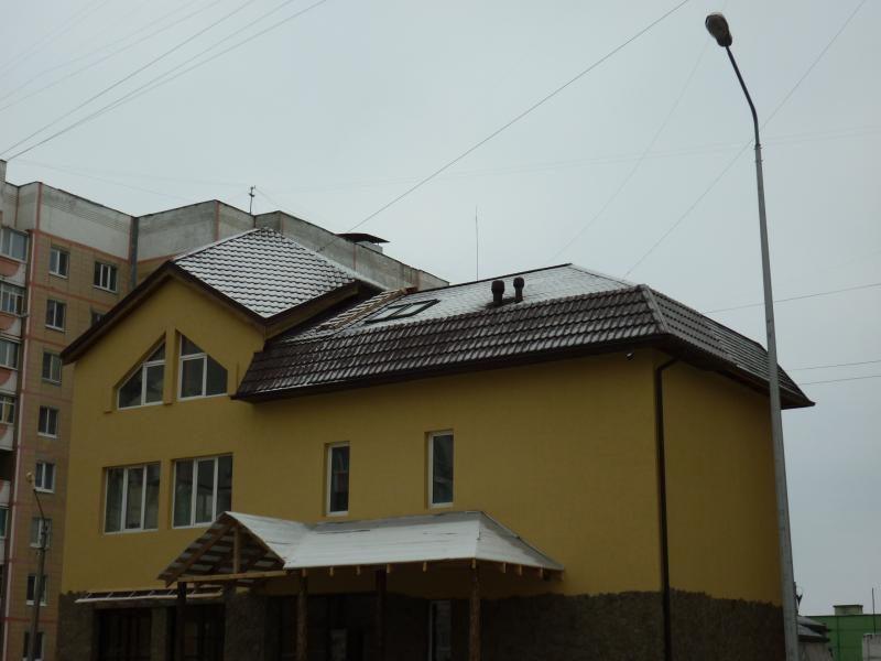 строили-строили ... и наконец построили... это здание по нашей улице стоит где-то с 93-го года. кровля была МЧ. потом кровлю разобрали до нуля... и буквально в прошлом году кто то купил это и начал доводить до ума. кровлю закончили пару месяцов назад. сделали мансарду и накрыли ГЧ Landmark ... и что вы думаете неделю назад начали накрывать поверх ГЧ металлочерепицей