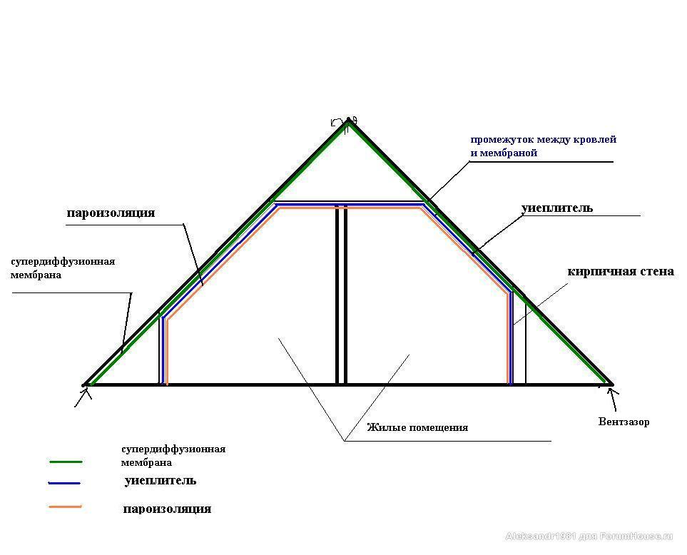 Кровля из натуральной черепицы, за 10 лет материал который был использован в качестве гидроизоляции (рубероид) прогнулся,отвалился - решили укладывать гидроизоляцию изнутри так как на рисунке - так как нет возможности чтоб демонтировать черепицу и уложить гидроизоляцию как полагается