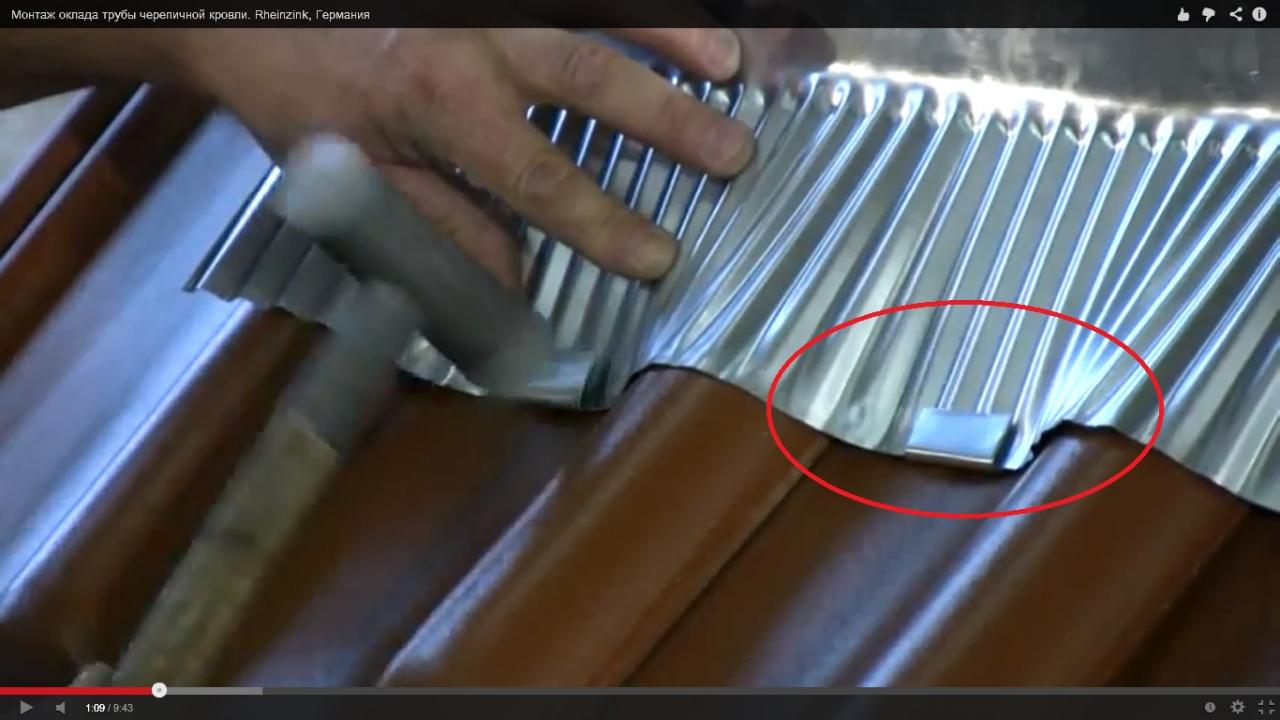 Фартук оклада прикатывается к кровельному материалу (к МЧ, например) резиновой киянкой. Если таковой нет, то используйте деревянную рукоятку обычного молотка. Никакими саморезами или клепками фартук НЕ крепится.