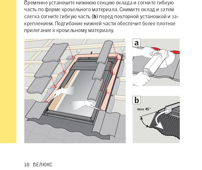 На второй приведенной вами картинке сказано, что в подобных случаях следует приподнимать обрешетку вокруг окна. Оклад должен обязательно опираться на обрешетку по всему периметру, а не висеть в воздухе, во избежание продавливания при эксплуатации.