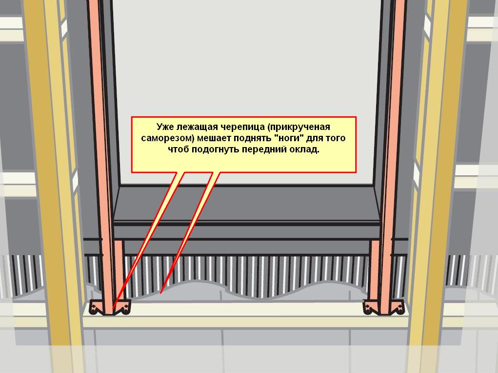 ..... Крепление опор к обрешётке не при чём, мешает не прикрутка опор....мешает их форма, но другой (при данном принципе установки) она быть не может.