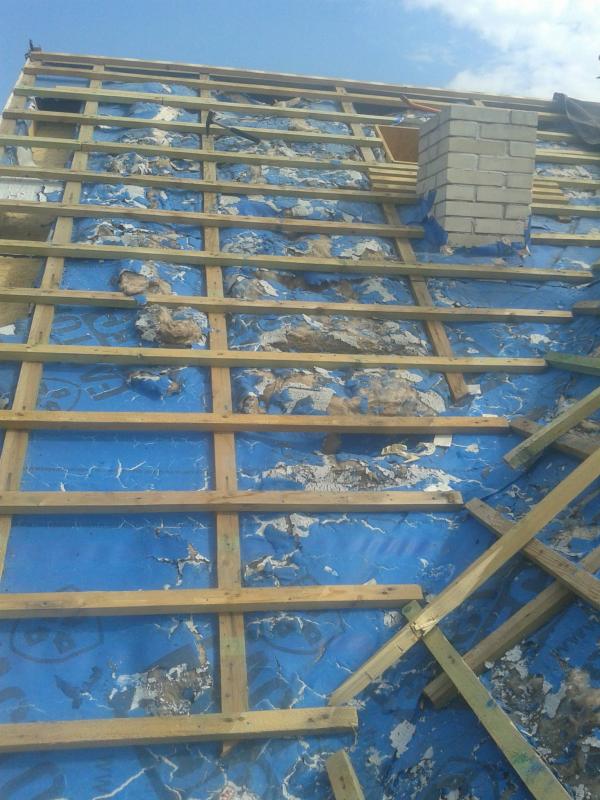Даже обычный не стабилизированный полиэтилен при заявленных условиях эксплуатации будет выглядеть лучше. Следы предыдущего ремонта говорят о том что гидроизоляция прохудилась до укрытия её черепицей. |
