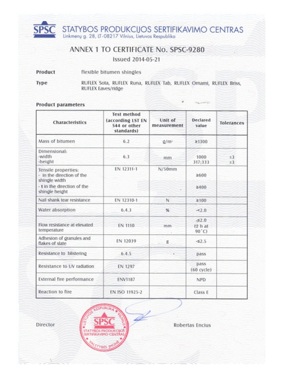 Еще немаловажно избегать спекуляций со стороны отдельных импортеров о том, что только в европе/финляндии черепица производится по евронорме EN544. Вранье! У Руфлекс уже с мая 2014 года есть данный документ