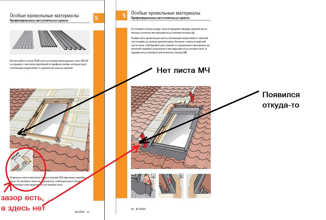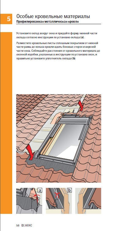 Хотя мы и не выпускаем инструкций под каждый конкретный вид кровельного покрытия, смею утверждать, что во всех наших информационных материалах достаточно ясно показано, как именно подводить кровлю к окну и окладу. Именно для того, чтобы любой установщик мог понять и разобраться.