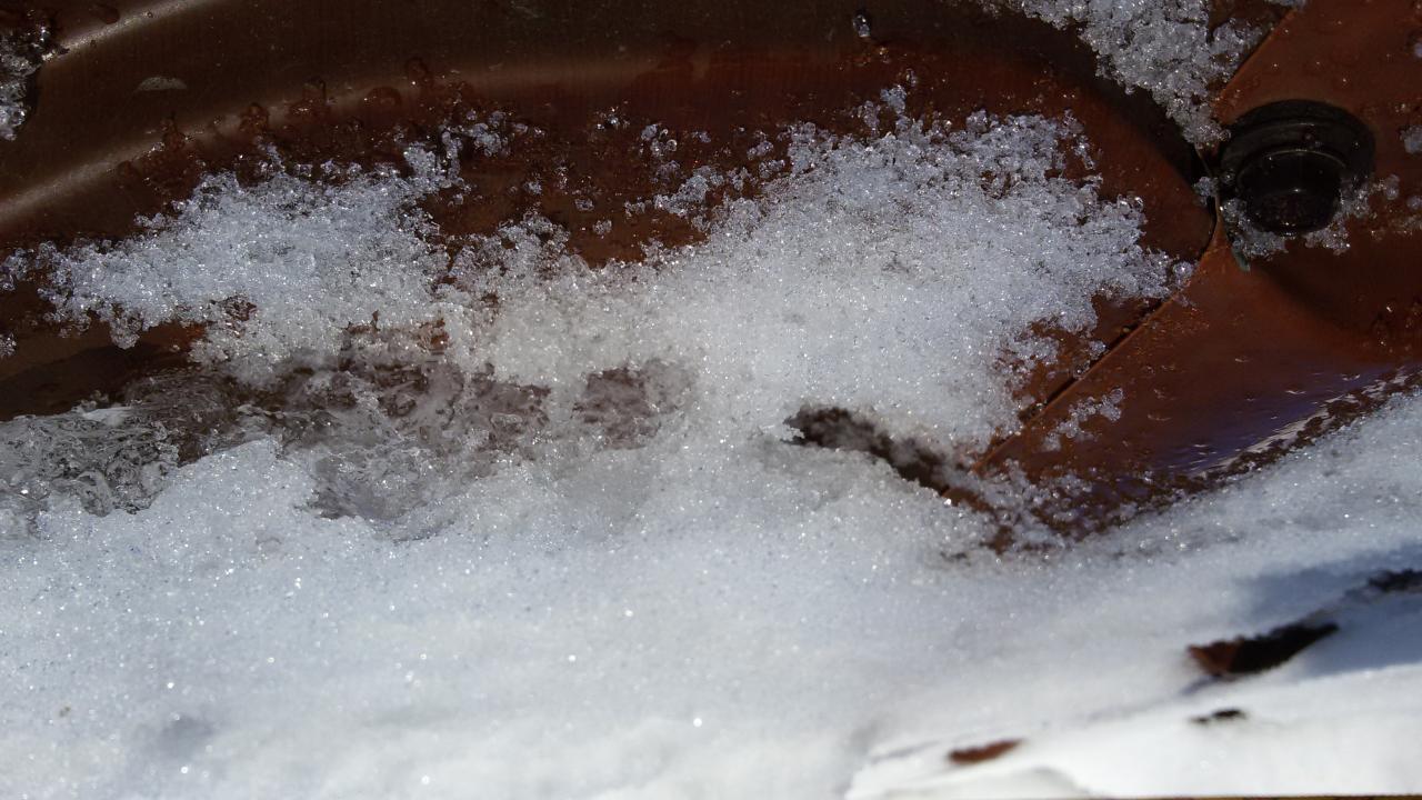 Почистили кровлю. Льда много. На всех скатах снег не сходит. Самый большой вопрос почему на южном скате не сходит снег.? Снегозадержания нет. Угол 35(примерно).
