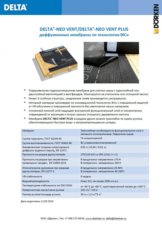 Компания Dörken GmbH & Co. KG в феврале 2016 года получила подтверждение от независимого Института tBU Institut für textile Bau- und Umwelttechnik GmbH о сохранении гибкости и работоспособности диффузионной мембраны DELTA-VENT N при температурах до минус 50 град. С.