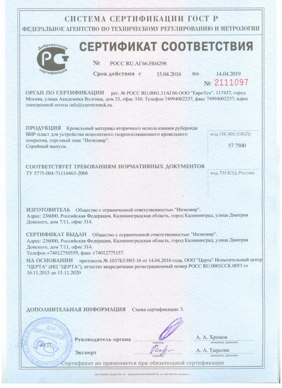 Экспертное заключение Роспотребнадзора (вместо санитарно-эпидемиологического заключения) на ВИР-пласт