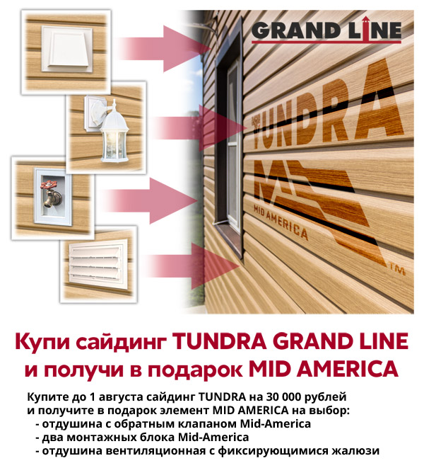 Рады сообщить, что с 22 июня стартует акция на виниловый сайдинг TUNDRA. До 1 августа 2017 за каждые 30 000 рублей, потраченные на виниловый сайдинг TUNDRA - гарантированный подарок на выбор: - вентиляционную отдушину 102 мм с обратным клапаном - вентиляционную отдушину с фиксированными жалюзи - два монтажных блока (мини-монтажный блок, оригинальный монтажный блок) |