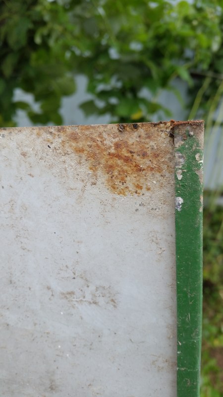 Интересный эксперимент провели с металлом от производителя Corus. Этот кусок листа был намерено оставлен и пролежал на сырой земле, за деревенским туалетом, лучше места не выбрать, 12 лет.