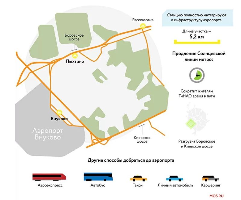 В конце мая началось строительство участка метро до аэропорта Внуково - на новом участке Солнцевской линии от станции «Рассказовка» до станции «Внуково».