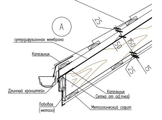 Мембрана должна идти до края ската, тем самым образовывая вент-зазор по всей длине ската.