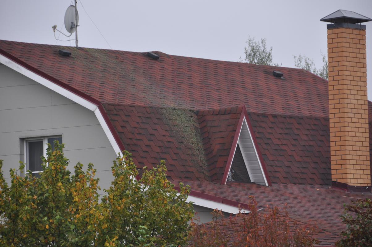 Вот, что написала Надежда Котова из "Roof-n-roll": " ...или поставить у конька медные планки - дождевая вода будет омывать скаты окисью меди, со временем снимая этот эффект. Или выбирайте американскую кровлю - она уже содержит медные гранулы, от чего дается гарантия от прорастания грибков."