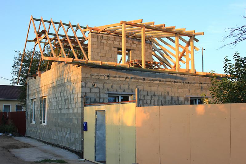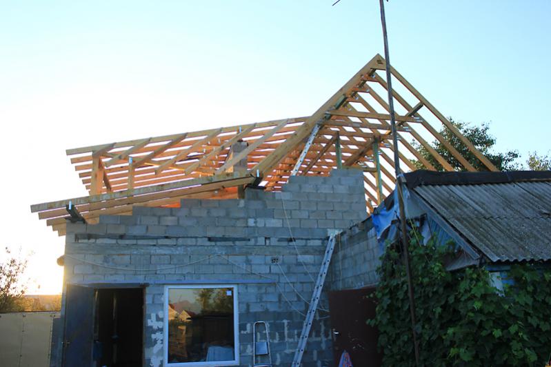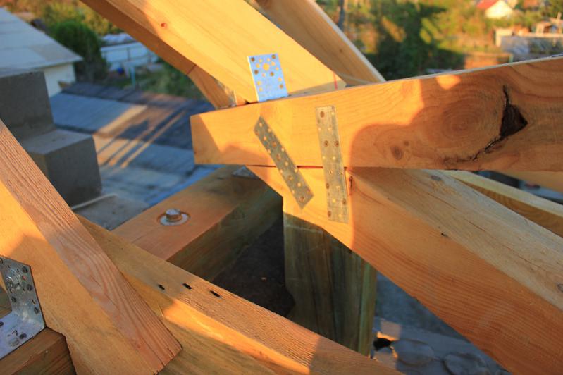 А где армопояс по газобетону? Пластины на первом фото вместо шпилек, затяжки прикручены к стропилам непойми как, саморезы фосфатированные вместо оцинкованых, да диаметром 5,5.