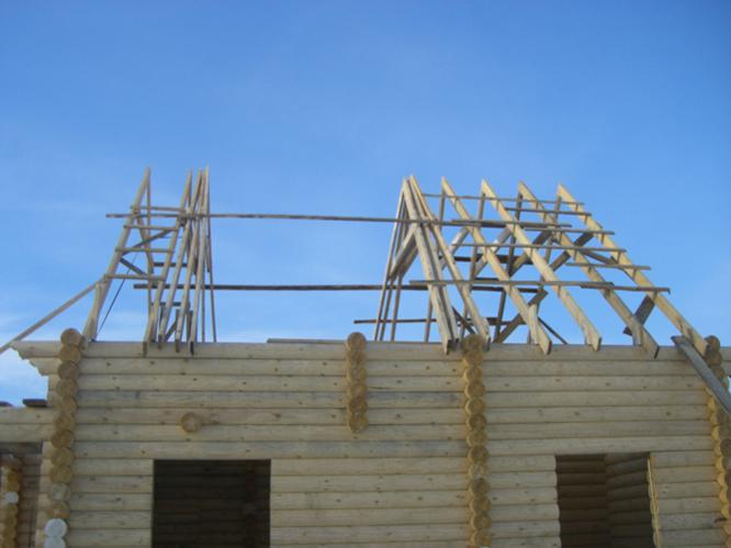Консольные выпуски верхних венцов , где второй уровень лутче убрать , что бы постараться избежать снежного мешка , и всех вытекающих из этого проблем .