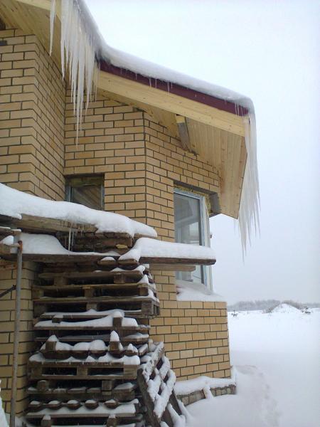 Дом с виду хороший. Придется будущим жальцам еще раз вкладывать в крышу, однозначно! Для неспециалиста такая картина означает - просто большие сосульки