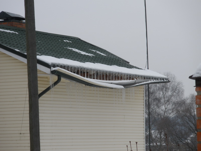 Вот ещё пример как образуются сосульки и как должно быть, если тепло не греет кровлю. На втором фото здание с того же участка, но не отапливаемое.