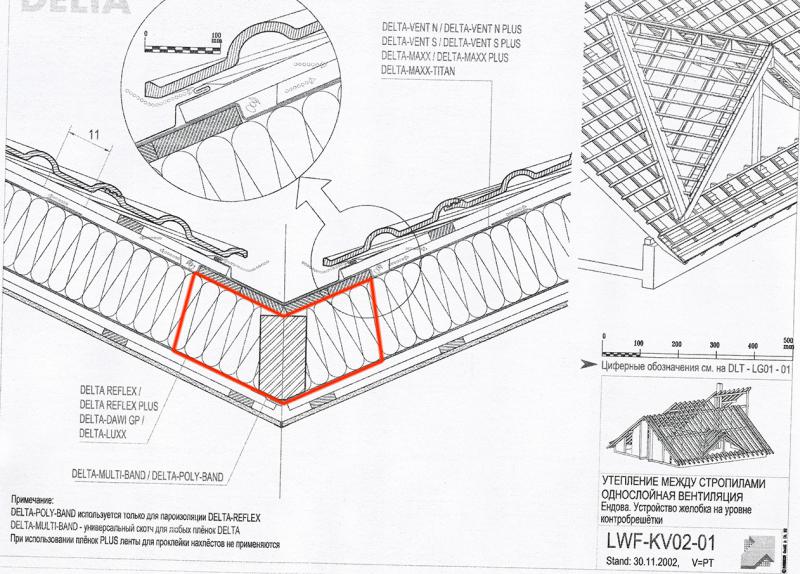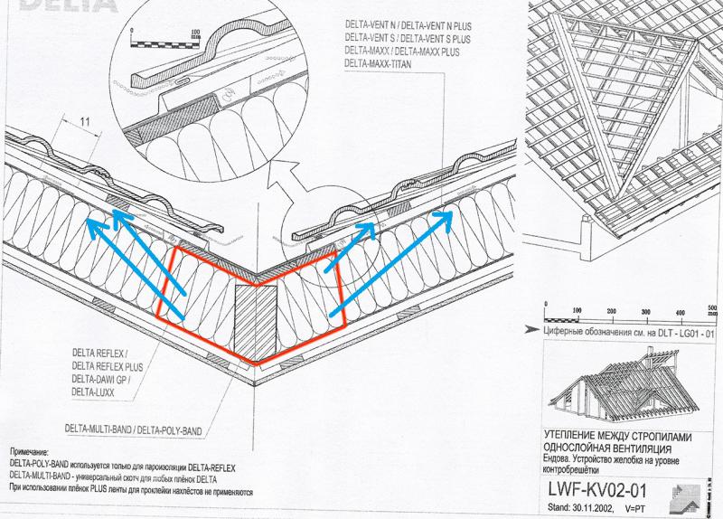 Вопрос 2: насколько обязателен вентконёк (аэраторы) в одноконтурной схеме утепления при использовании диффузионных мембран аналогичных DELTA-VENT S (с аналогичными параметрами Sd и водонепрницаемости) и межстропильным утеплением мин.ватой, идущим до конька кровли?? И каковы последствия его (вентконька) отсутствия??