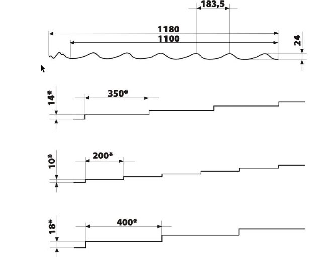 Водосточная канавка должна накрываться соседним листом. Нижний край листа устанавливается с выступом от карниза на 40 мм. Советуем первые три-четыре листа прихватить на коньке только одним шурупом, тщательно выровнять по карнизу и только после этого закрепить основательно по всей длине.