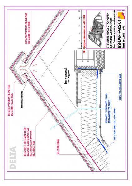 В случае утепления по ригелям сверху останется небольшое холодное пространство, поэтому на коньке DELTA-VENT N надо будет прорезать (сделайте это перед окончанием утепления, если ещё не будет уложена кровля, либо непосредственно перед устройством вентилируемого конька в кровельном покрытии.