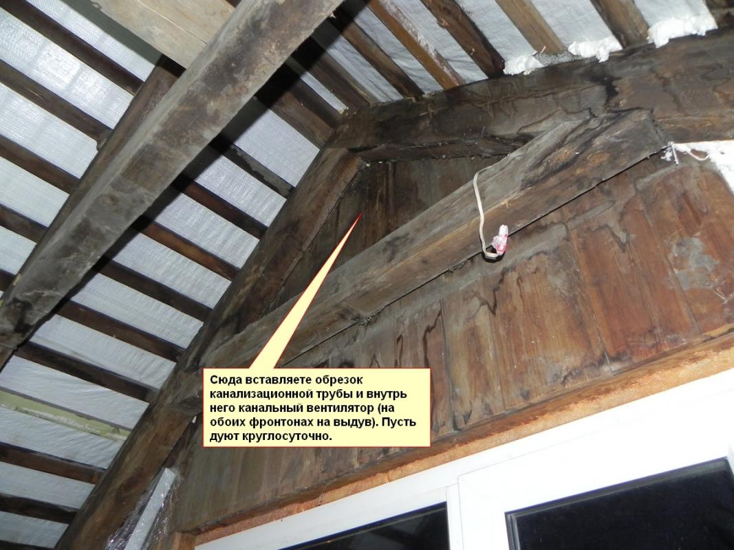 Канальный вентилятор устанавливать, это дырявить 25-30 сантиметров стену бутерброд из досок картона и бумаги, потом её герметично врят ли сделаю хорошо, окно на проветривание пойдёт или нужно как раз в верхней точке, почти до конька отток воздуха? Если так, то можно просто гофру вытяжку организовать в окно