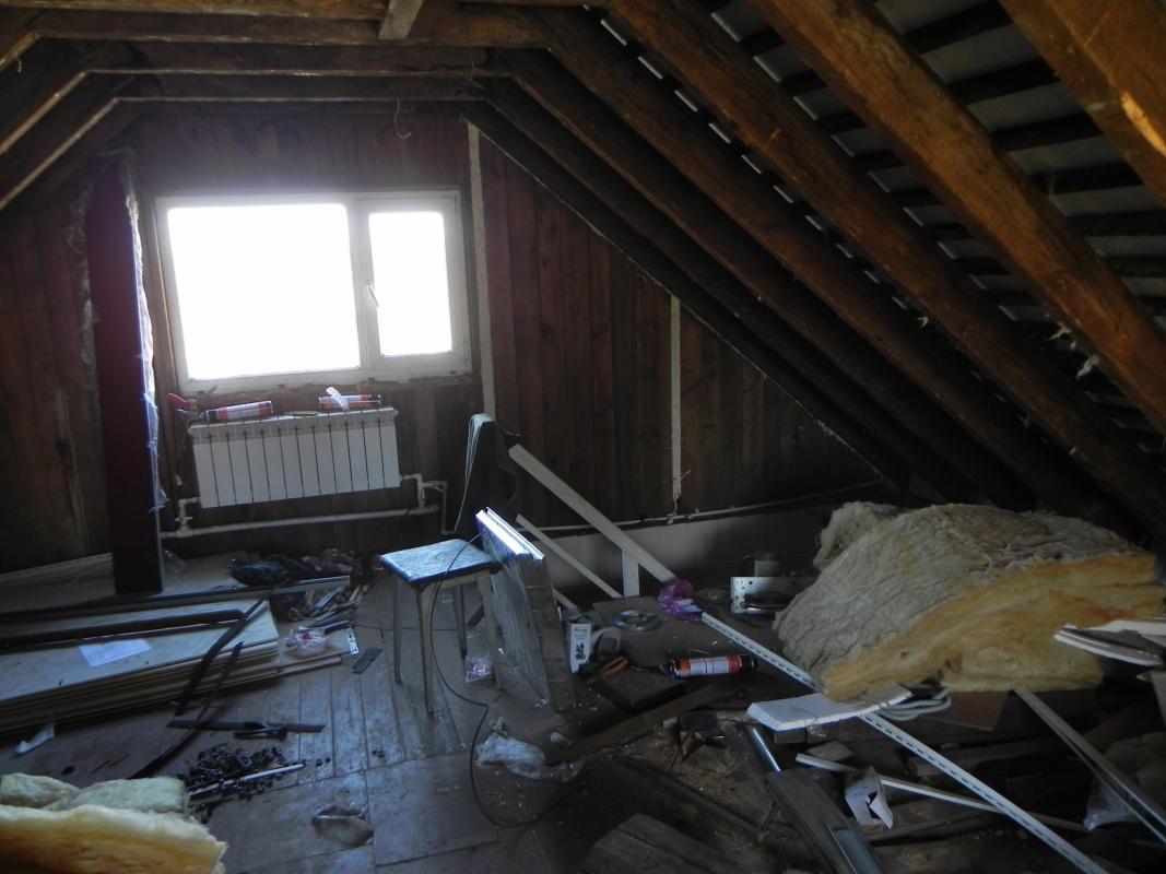 На чердаке/мансарде можно будет с чем то возится но ОТОПЛЕНИЕ НЕ ВКЛЮЧАТЬ пока не решатся все проблемы с утепелением. Попадать туда можно через дверь/окно во фронтоне...