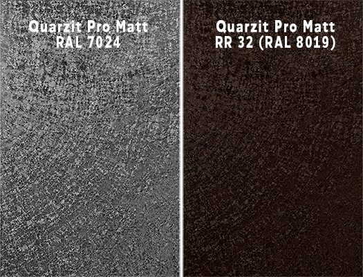 Представляем новые цвета в ассортименте покрытия Quarzit Pro Matt - RAL 7024 и RR32. Ассортимент цветов: RAL 8017, RAL 7024, RR32 Особенности: