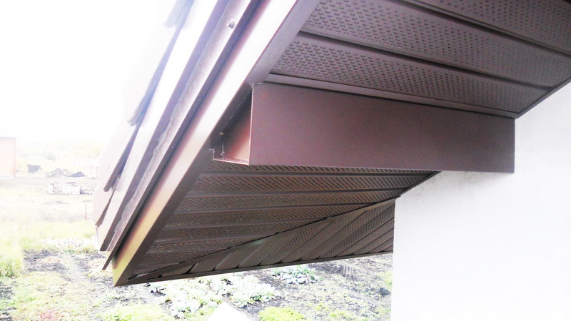 Подшивка карнизного свеса из алюминиевого софита ГЕНТЕК... с лобовой доской из стали.