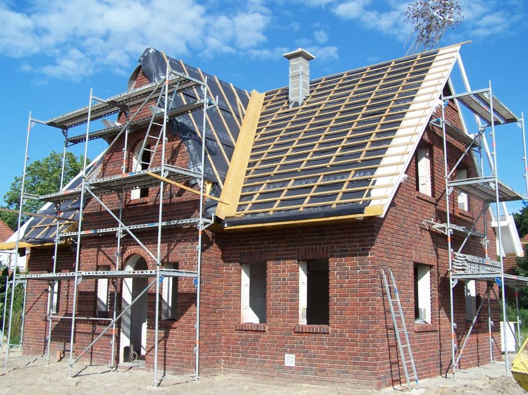 Обратите внимание, что небольшие слуховые окошки заранее собирают на земле и устанавливают как готовое изделие.