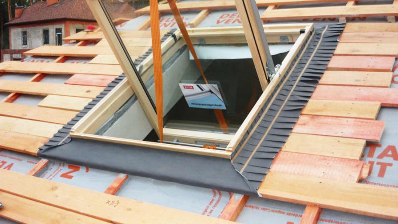 Делали, правда давно. Делаешь надрез пленки над окном, потом пилкой по металу выпиливаешь кусочки контрика. Продлеваешь надрез пленки до оси стропил с двух сторон и см 10-15 вверх по стропиле. Далее изготавливаем планку, подсовываем под пленку и крепим.Ну вот примерно как то так. Я и говорю, ювелирная работа.