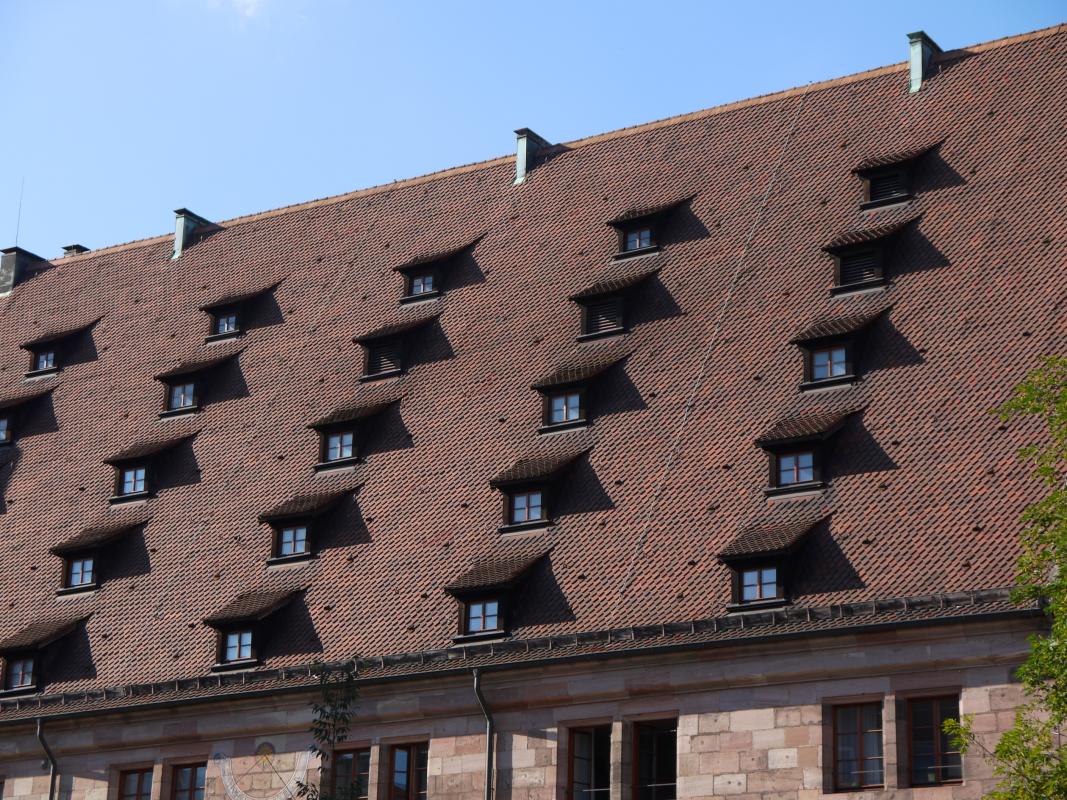 Если Вы были в Нюрнберге, то вряд ли видели в Старом городе крыши с такими окнами. Только люкарни/дормеры, причём с односкатными крышами.