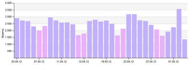Статистика посещаемости ресурса с апреля по май: