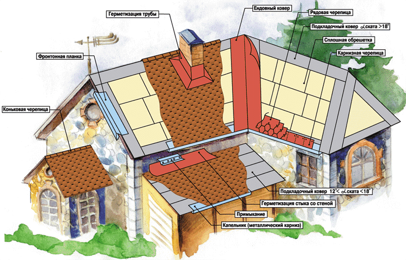 Подкладочный материал и кровельный гидроизоляционный материал являются рулонным материалом и служат для дополнительной гидроизоляции по всей площади крыши. При уклоне более 18 градусов возможно применение только на карнизных свесах, торцах в ендовах и в местах кровельных переходов.