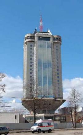 "Рюмка" в высоту насчитывает 77 м, ее конструктор З.М. Ярмолинский, и архитектор О.Л. Павлина хотели получить необычную форму гостиницы, в духе новых веяний. В итоге была выбрана усеченная пирамида, так можно было уменьшить площадь, занимаемую постройкой, и в то же время получить нестандартный облик. Дополнив проект монолитной обшивкой из железо-бетона, авторы получили уникальную постройку.