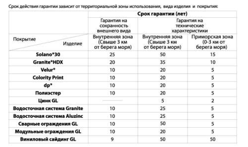 • Гарантия на технические характеристики (приморская и внутренняя зона). На покрытие Granite® HDX она составит 35 лет, а на Solano® 30 - 50 лет!