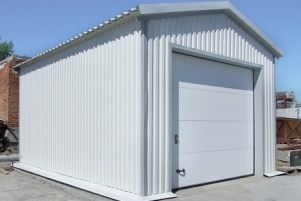 Гараж состоит из стен, прочного каркаса, кровли и ворот. Размер стандартного бокса составляет 4*6 м. В зависимости от количества автомобилей (1, 2 или 4) и пожеланий заказчика, Металл Профиль предлагает 7 комплектаций, состоящих из базовых секций. Поставка может осуществляться как отдельно, так и полным комплектом. Каркас представляет собой оцинкованные профили с болтовыми соединениями. Кровля и стены сделаны из СП ПС (сэндвич-панели поэлементной сборки). Для утепления применяются минераловатные плиты (толщина 10 см). По теплоизоляционным характеристикам ограждающие конструкции не уступают кирпичным стенам метровой толщины. Форма кровли: односкатная или двускатная. Виды облицовки: профилированный лист (стены и кровля), линеарные панели и сайдинг (стены).