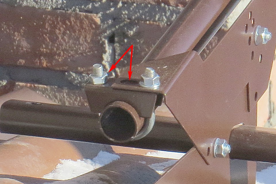 На регулировочном кронштейне есть два отверстия..... рядом есть хомут с двумя "рогами".... но почему то только один "рог" лезет в одно отверстие?? А зачем второе?? |