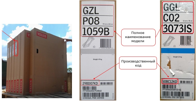 Подобным образом маркирована вся продукция ВЕЛЮКС: каждое изделие имеет свое обозначение и производственный код.