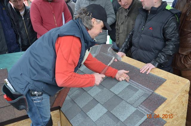 Преимущества Кембридж EXTREME: - за счет широкой клеевой полосы с обратной стороны гонта - максимальная надежность приклеивания гонтов друг к другу. - широкая клеевая полоса позволяет монтировать Кембридж EXTREME на минимальный угол наклона - 9,5 градусов, что недостижимо для других производителей. - максимальная надежность от проникновения влаги и ЛЮБЫХ других осадков под черепицу и внутрь кровельной конструкции за счет надежности от приклеивания с помощью широкой клеевой полосы гонтов друг к другу. Традиционно IKO ROAD SHOW собирает кровельщиков со всей Беларуси, а также много людей из компаний, которые занимаются продажей мягкой кровли IKO, потому что как и в прошлом году IKO ROAD SHOW это мероприятие 2 в 1: мастеркласс по укладке битумной черепицы IKO от профессионального кровельщика Европы и инженера компании IKO Sales International и соревнование между кровельщиками на скорость по забиванию гвоздей на время, призом после которого для кровельщика, чье время станет лучшим, будет уикенд в Италии и возможность погонять на суперкаре FERRARI (фотоотчет IKO ROAD SHOW 2014 в Италии). Ознакомиться с ассортиментом и приобрести IKO CAMBRIDGE можно здесь >> Фотоотчет IKO ROAD SHOW 2015 в Минске представлен ниже: