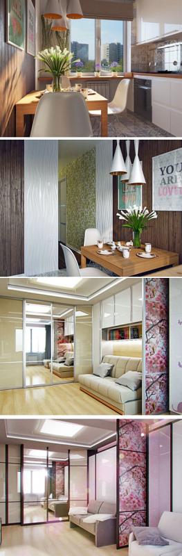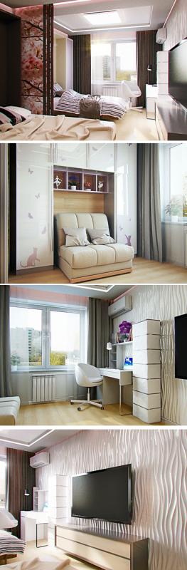 Кстати, на днях завершили проект для молодой семьи из 3-х человек, проживающих в однокомнатной квартире площадью всего 32м2 (часть 3D-визуализации ниже).