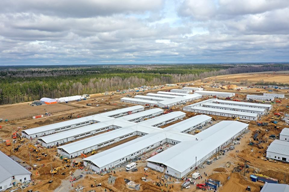 Инфекционный центр в Голохвастово растет на глазах. Количество работающих было увеличено до 10000 человек.