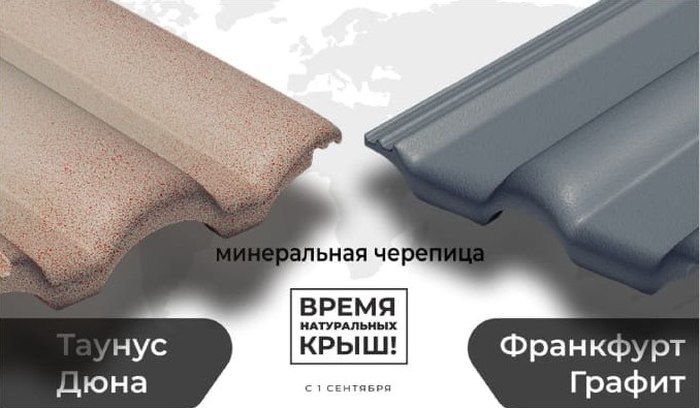 В сентябре BMI Россия представила новые цвета минеральной черепицы БРААС. Это Франкфуртская графит и Таунус дюна.