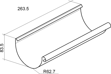 Предназначен для сбора дождевой воды с кровли. Желоб фиксируется на крюках, установленных с промежутком 600-900мм и обеспечивающих уклон 5 мм на погонный метр. |